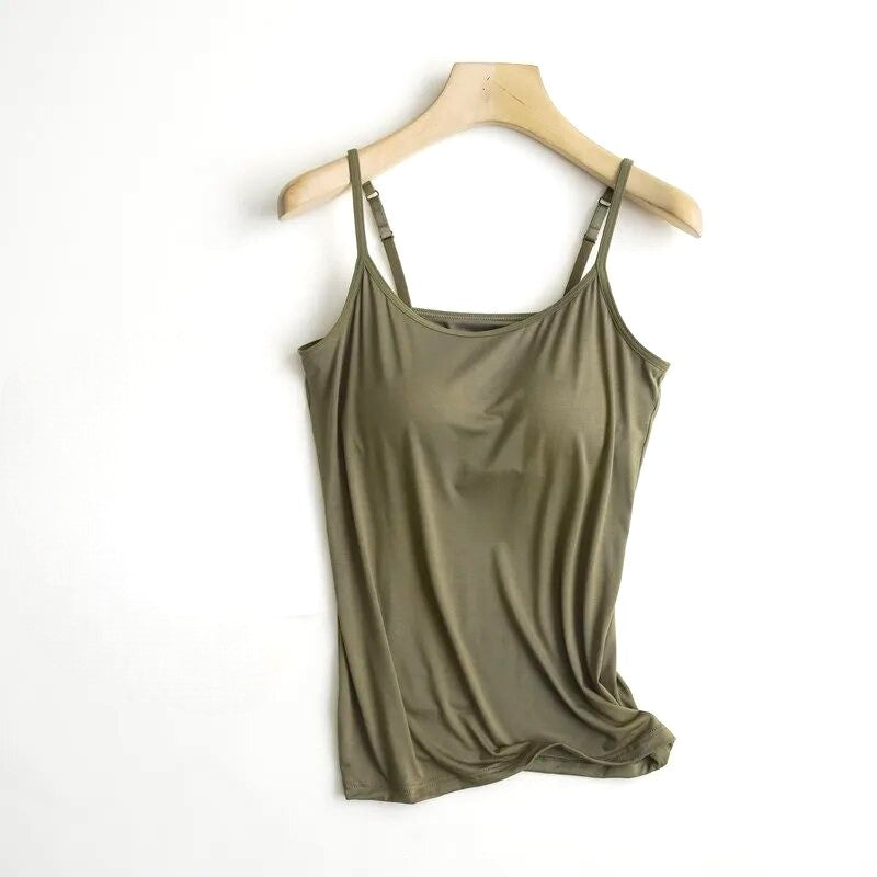 Imprescindible en el armario de cualquier mujer, esta prenda está diseñada para la mujer moderna que prioriza la comodidad sin renunciar al estilo. Combinando la simplicidad atemporal de una camisola clásica con la practicidad de un sujetador incorporado, esta elegante prenda fusiona a la perfección moda y funcionalidad.