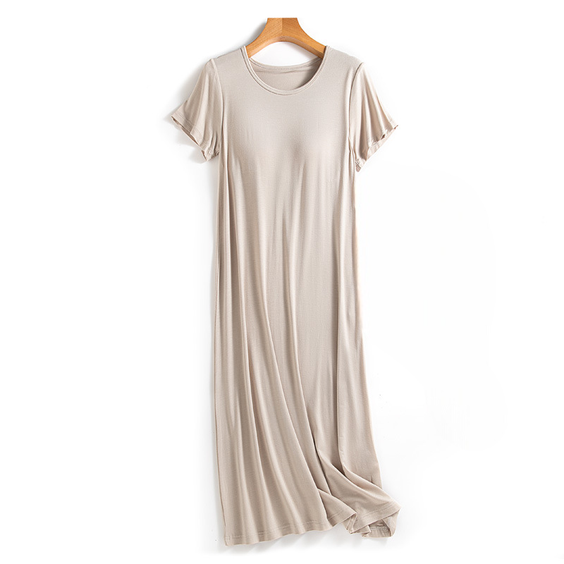 Start and end your day in effortless comfort with our Lounge Dress featuring a built-in bra—where timeless style meets everyday ease.
