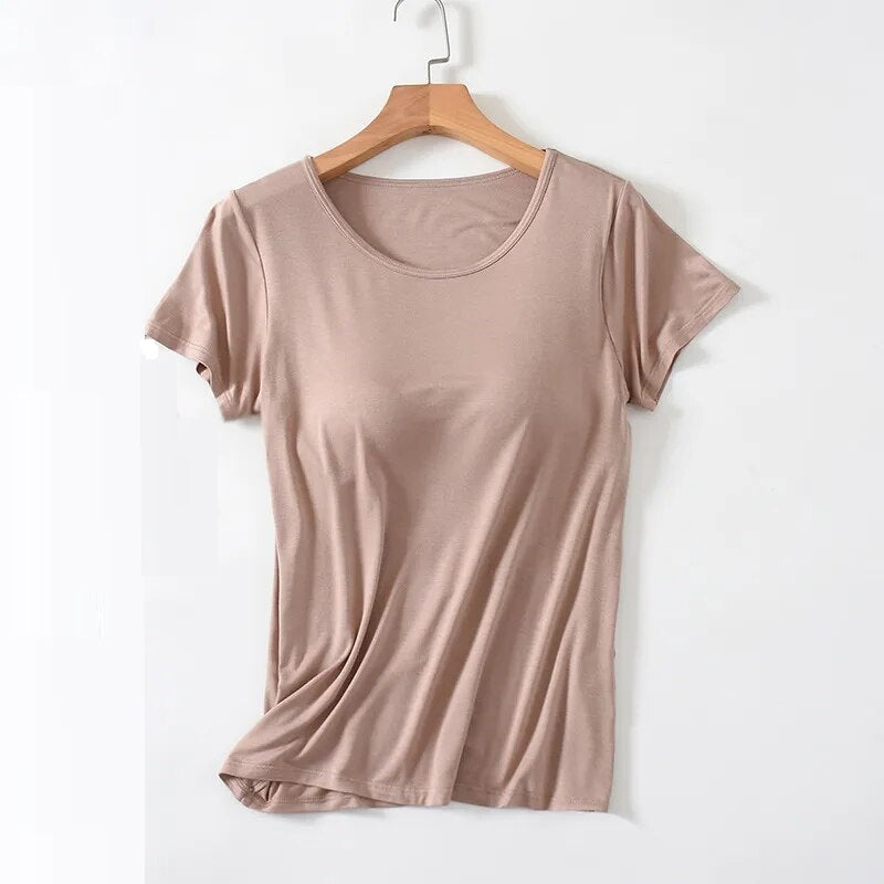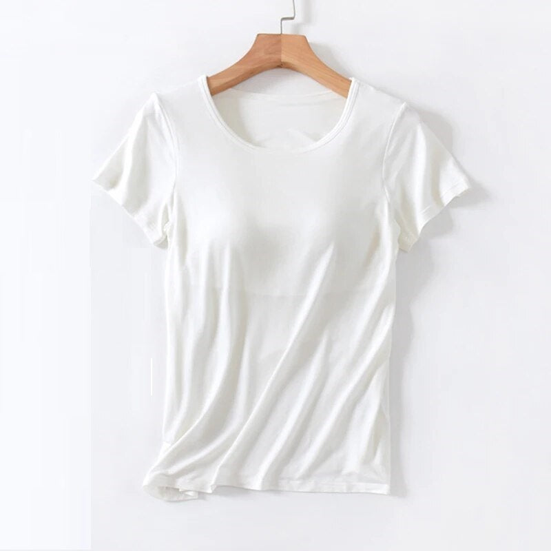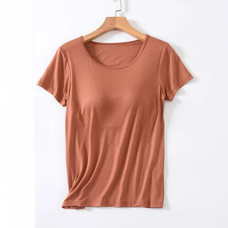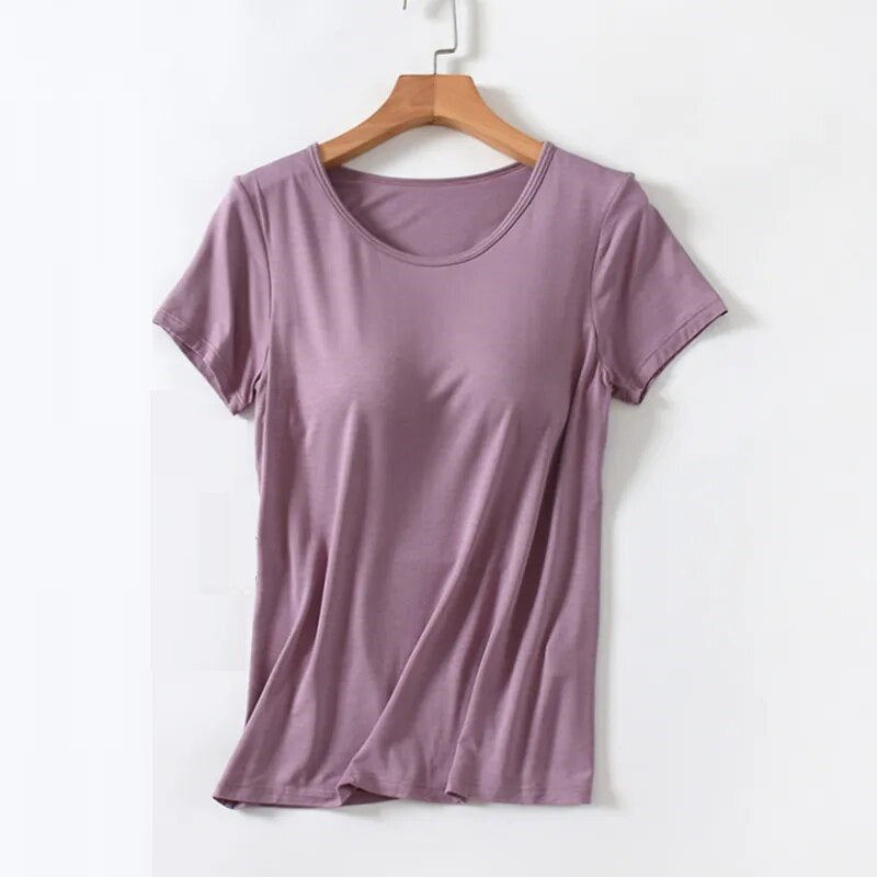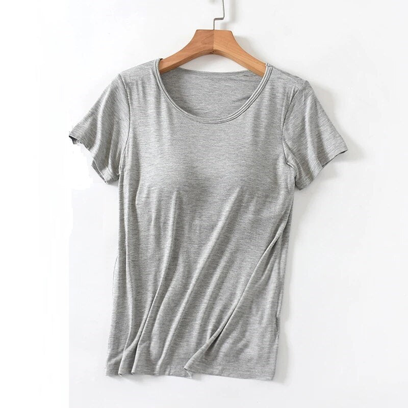 Versatile Wardrobe Staple: Whether you're heading to work, meeting friends, or enjoying a relaxed day at home, this T-shirt with a built-in bra is a versatile choice for any setting.