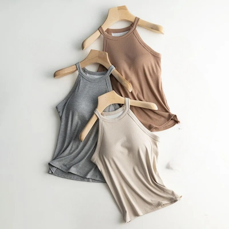 Upgrade your daily attire with our Halter Neck Casual Top featuring a Built-in Bra — a seamless blend of style and functionality. This versatile top combines the trendy appeal of a halter neck with the practicality of an integrated bra, offering both comfort and sophistication.