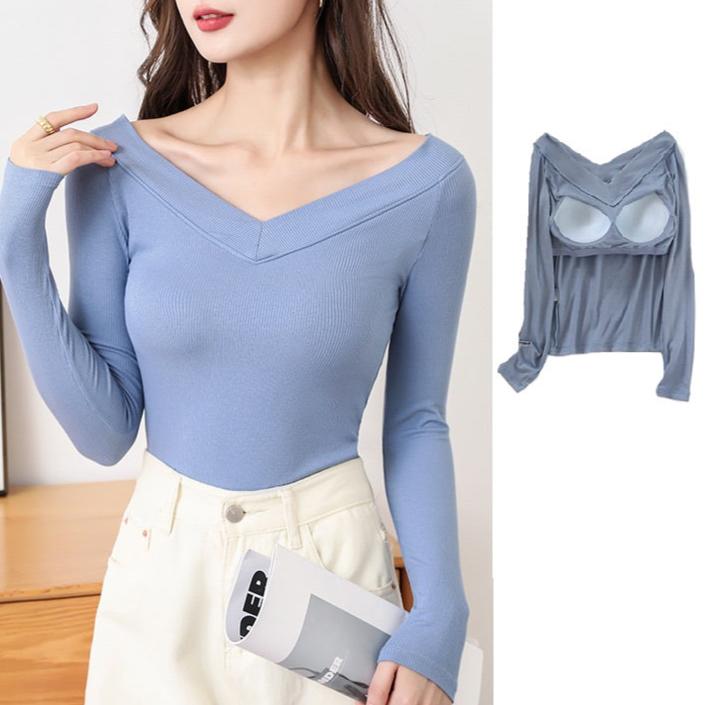 This Long Sleeve Off Shoulder Built-in Bra Top is the perfect fusion of style, support, and versatility—a must-have addition to any wardrobe.
