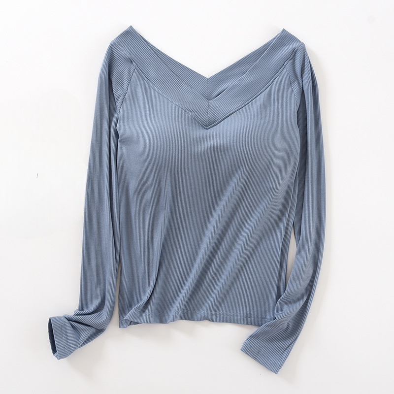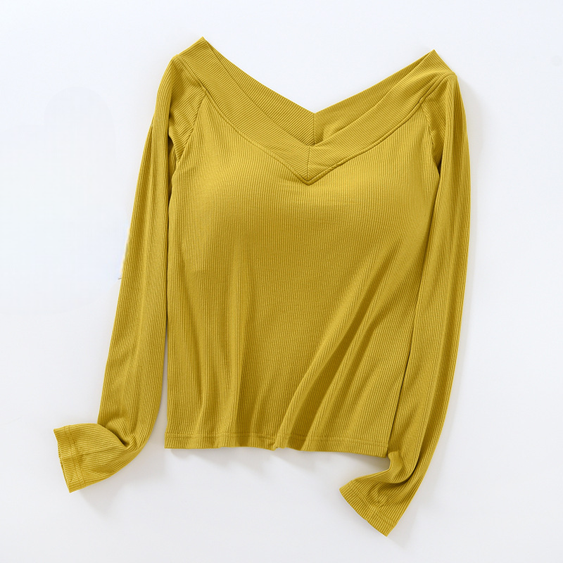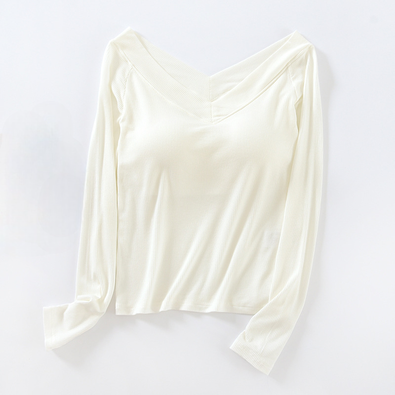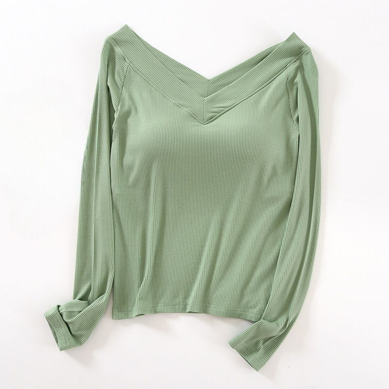 Long Sleeve Off Shoulder Built-in Bra Top