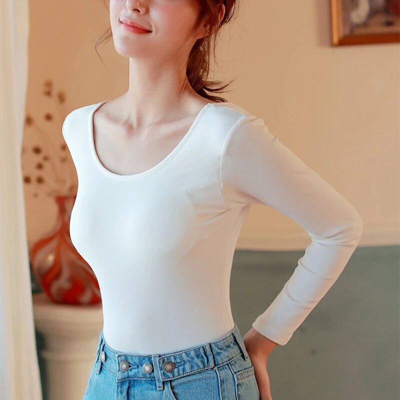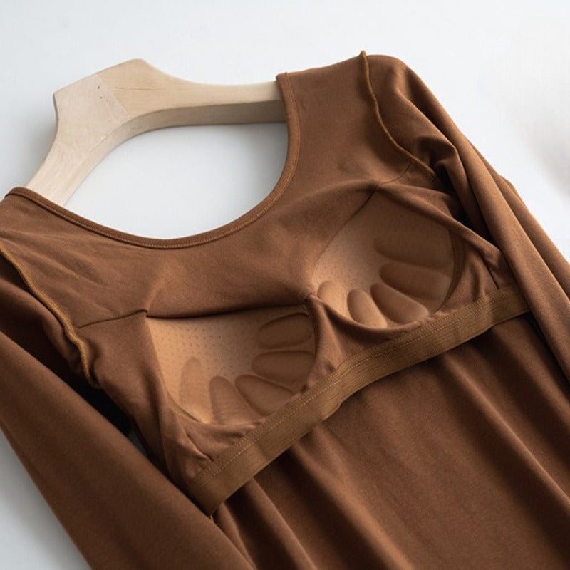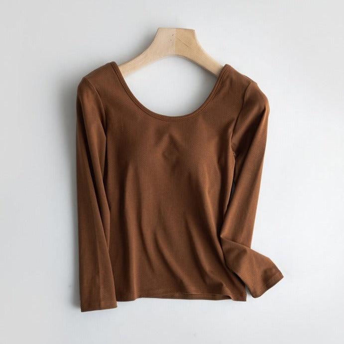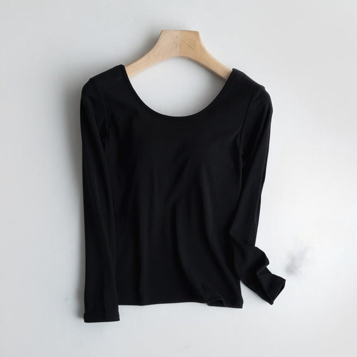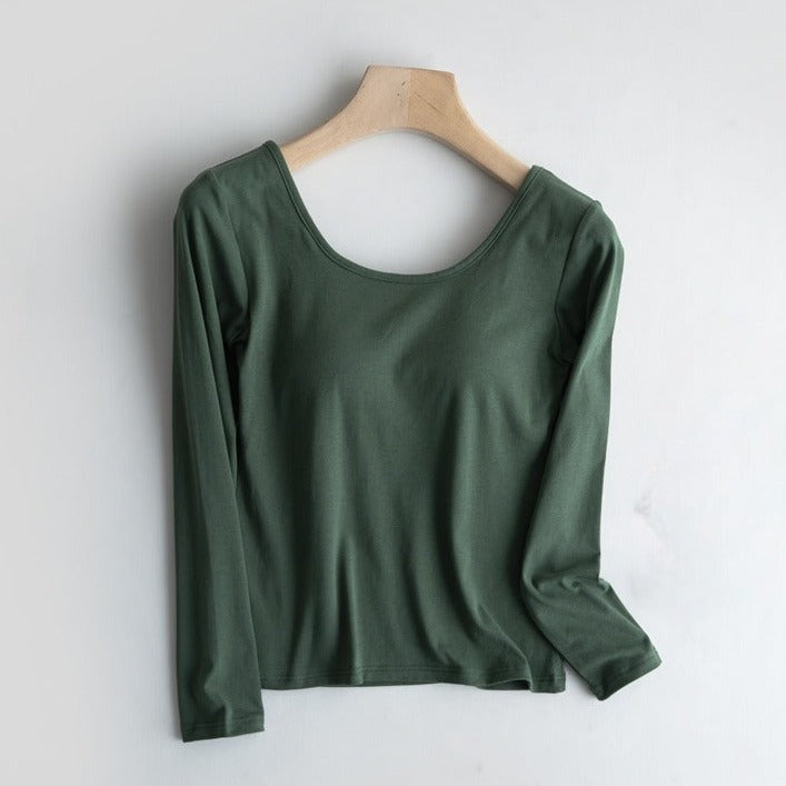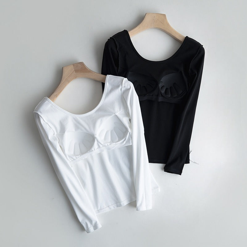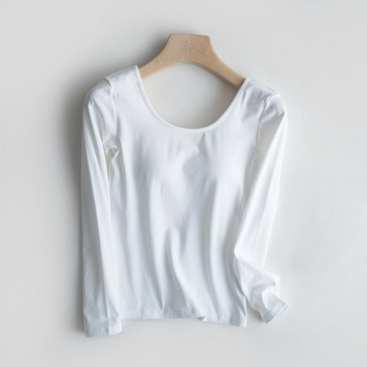 Long Sleeve Round Neck with a Built In Bra Cotton