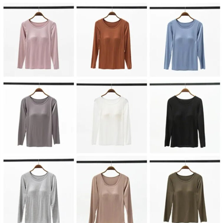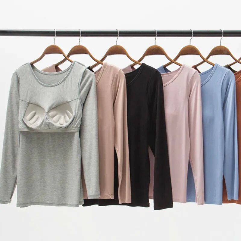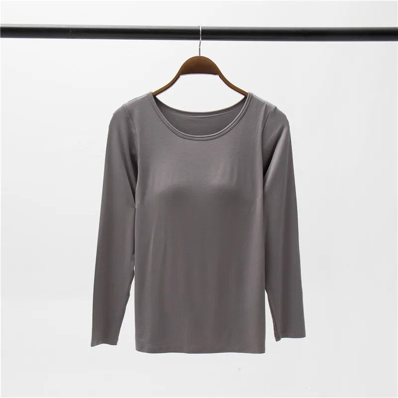 Introducing our Long Sleeve Top with a Built-In Bra  — the epitome of cozy sophistication for your loungewear collection. Experience the perfect blend of comfort and support in this versatile and stylish piece designed for both relaxation and casual wear.