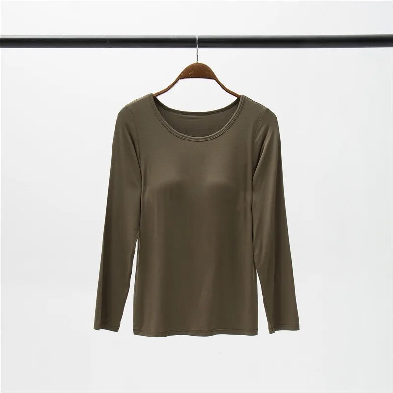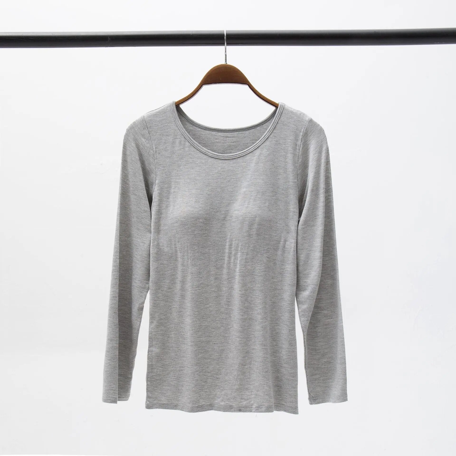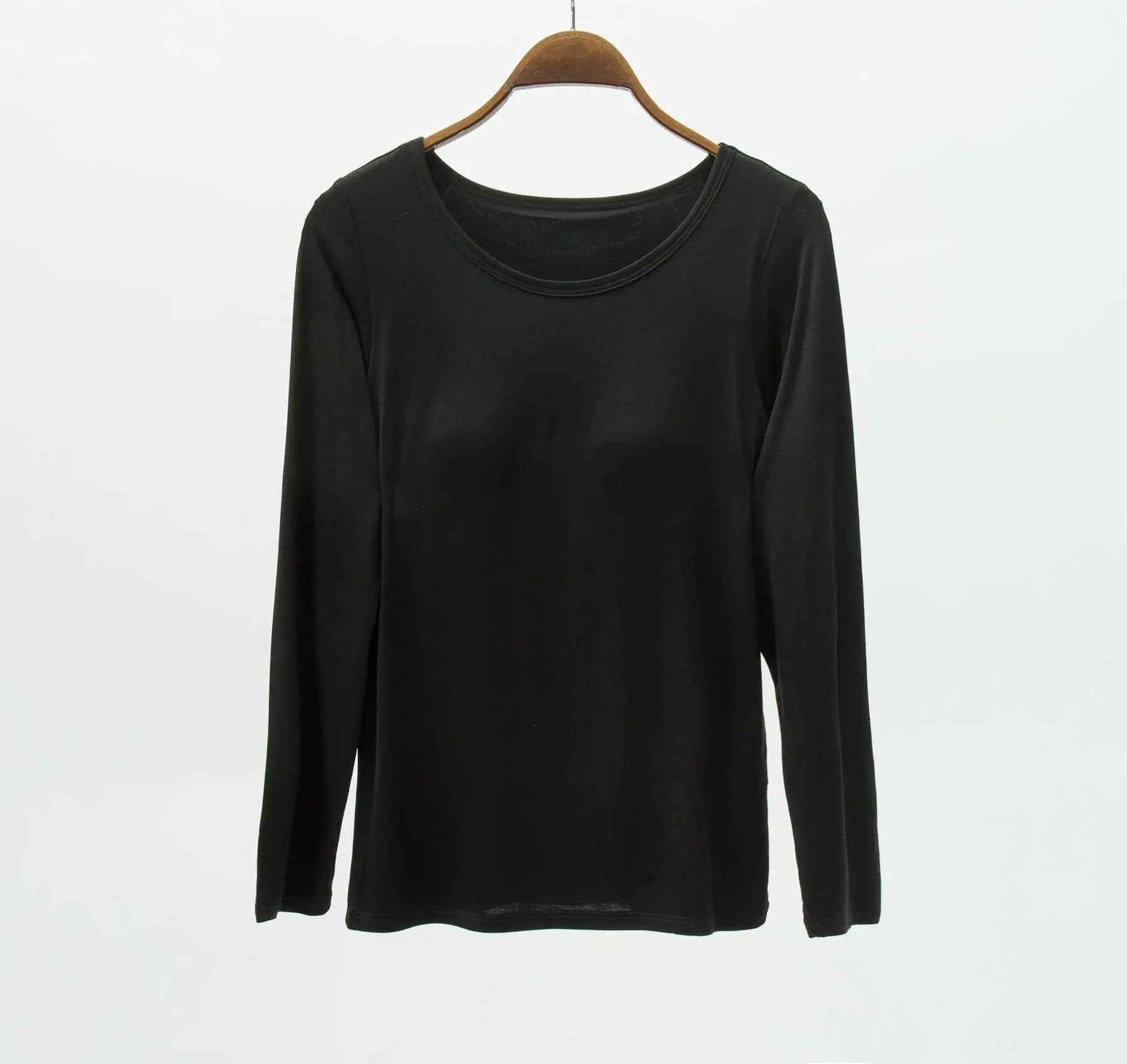 Stylish Design: The long sleeves offer added warmth, and the overall design exudes a casual elegance. The chest padding enhances your natural contours, while the built-in bra provides necessary support for a flattering silhouette.