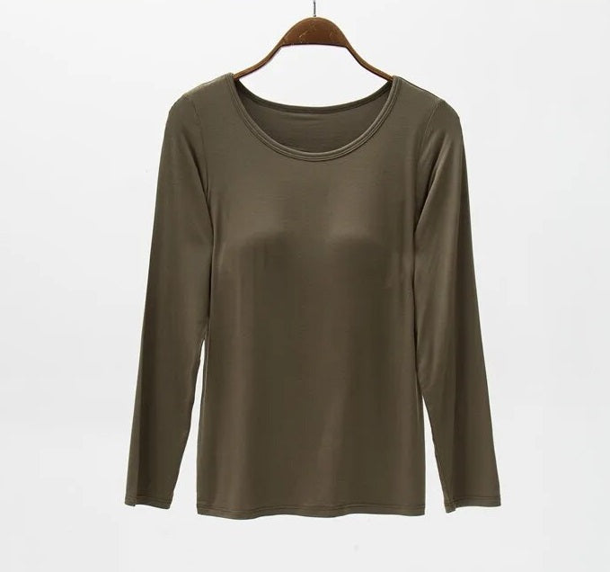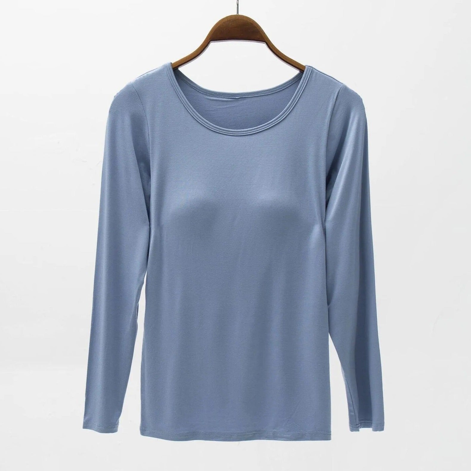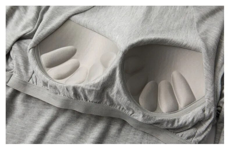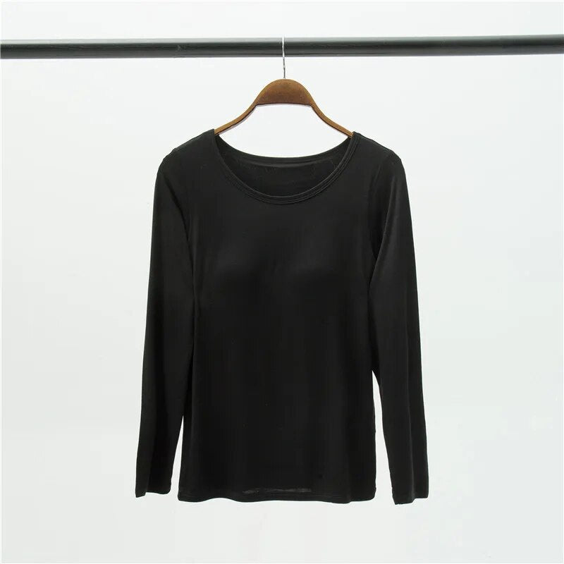 Long Sleeve Top With Built In Bra Chest Padding Loungewear Plus size available