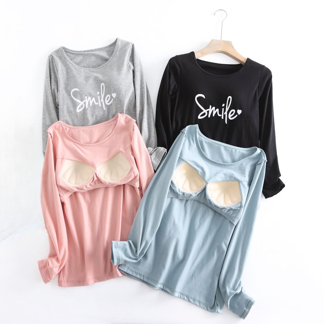 Introducing our Long Sleeve Top with Built In Bra made in Cotton - experience the ideal blend of ease and support with this versatile and stylish garment, perfect for both leisure and casual wear.