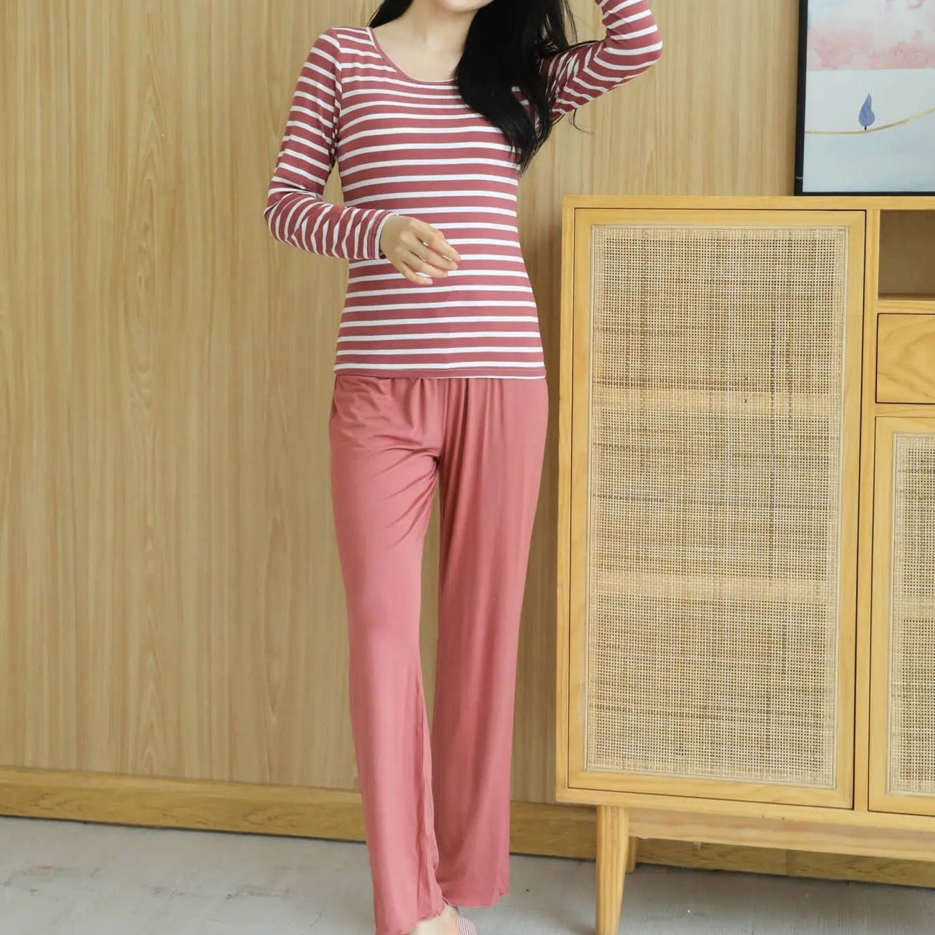 Stylish Two-Piece Set: The combination of a long sleeve top and long pants brings both style and ease to your relaxed moments, offering a cohesive and put-together look for your lounging sessions.