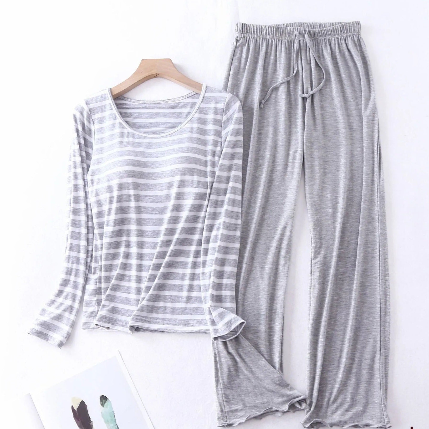 Long Sleeve Two Piece Pyjama Set Built In Bra