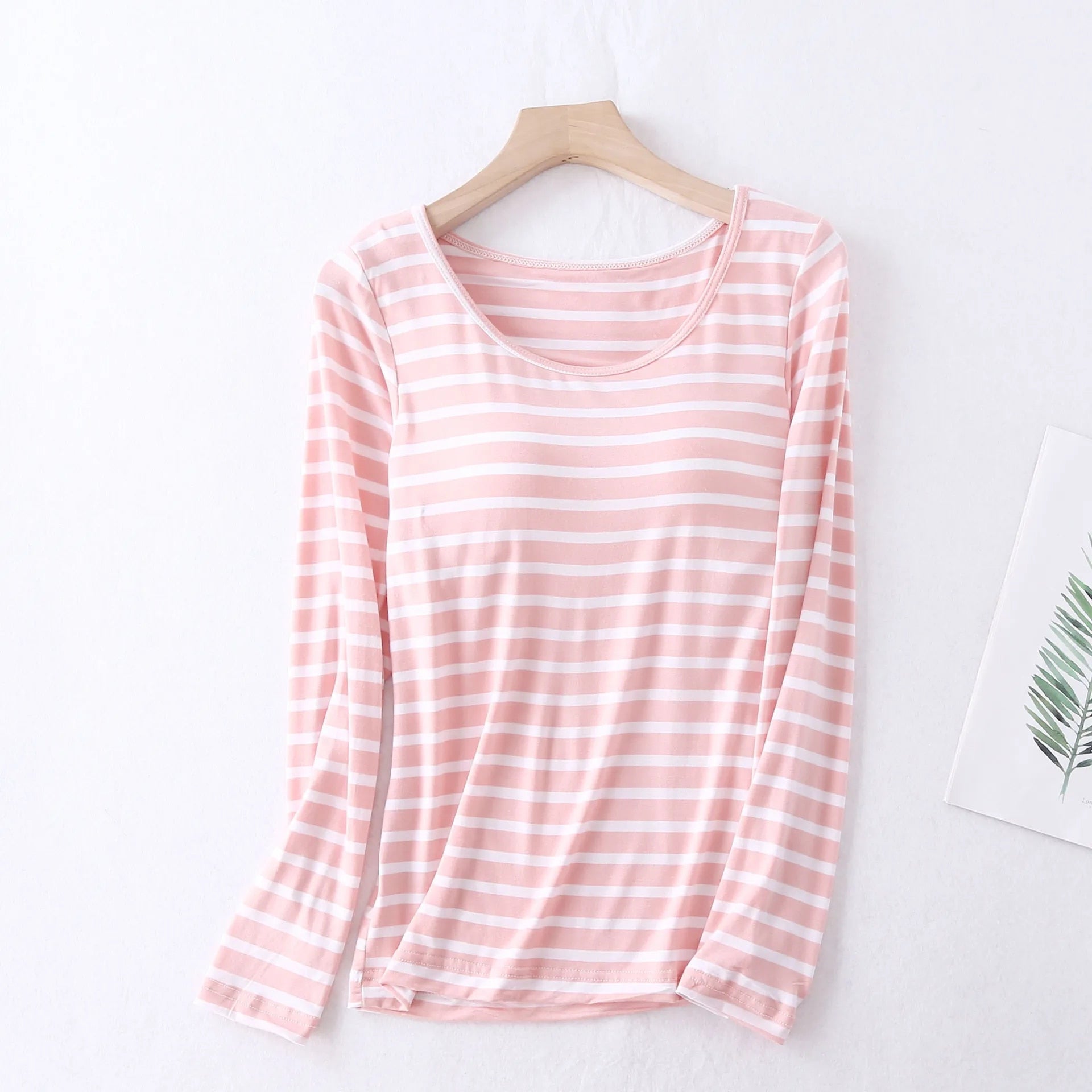 Built-In Bra Wireless: Eliminate the hassle of layering with our long sleeve top featuring a wireless built-in bra, ensuring optimal support without the need for additional undergarments. It's a convenient and streamlined solution for your lounging needs.