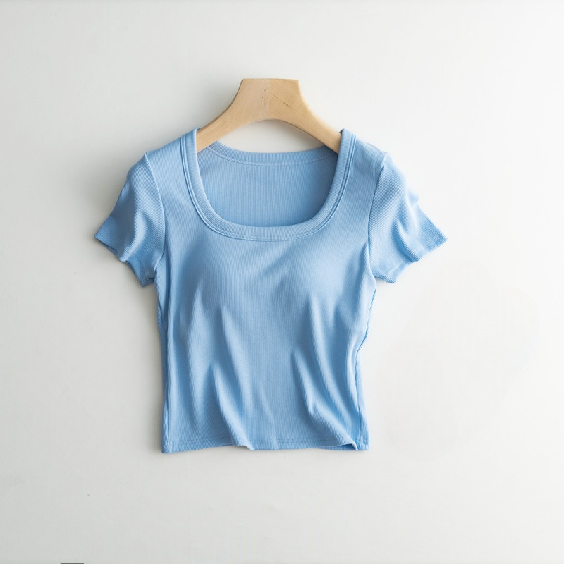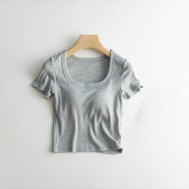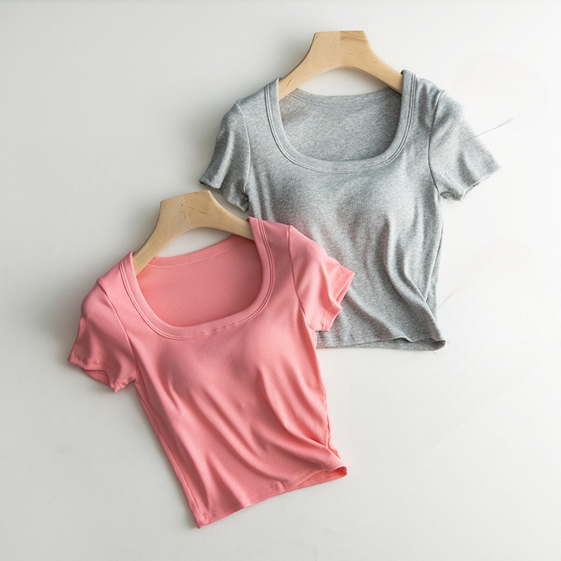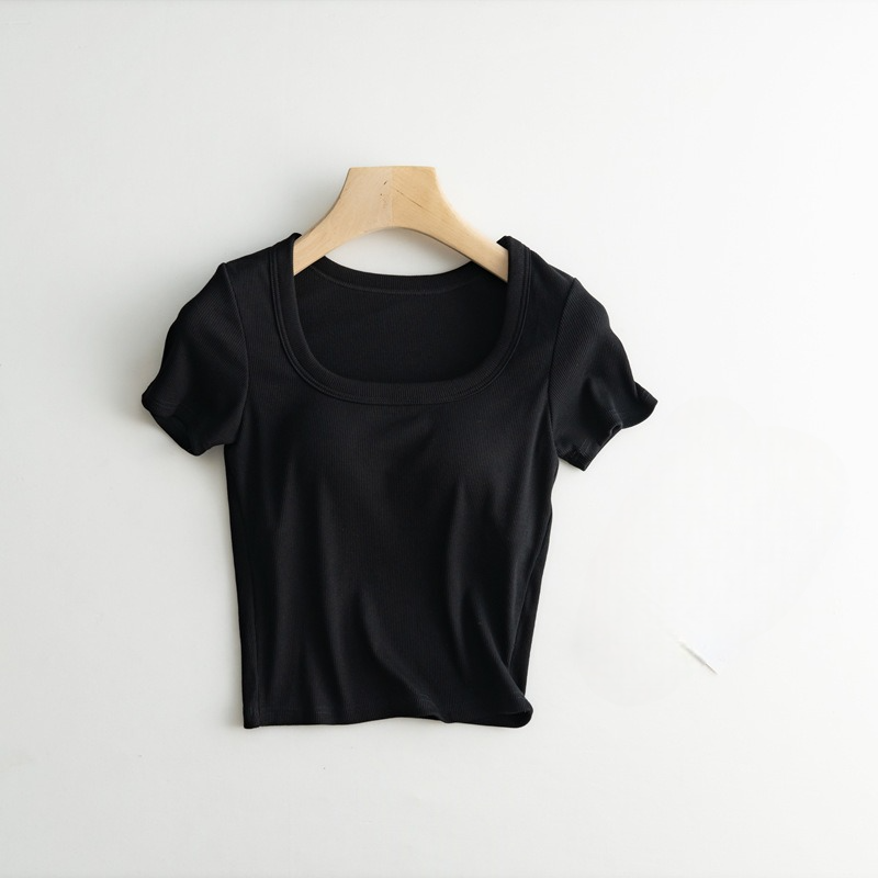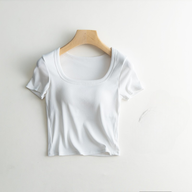 Scooped Neck Built in Bra T-Shirt Crop Length