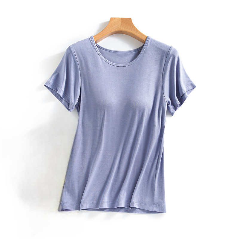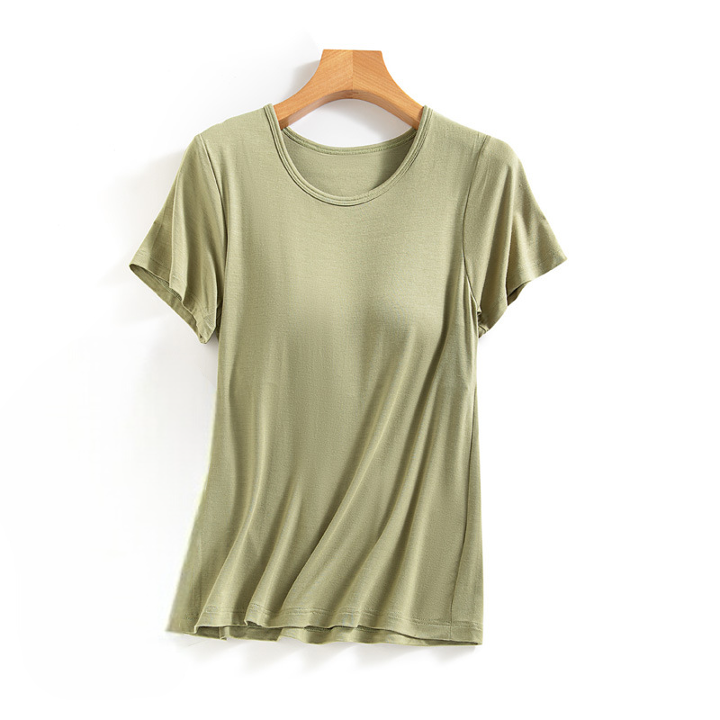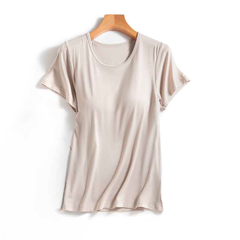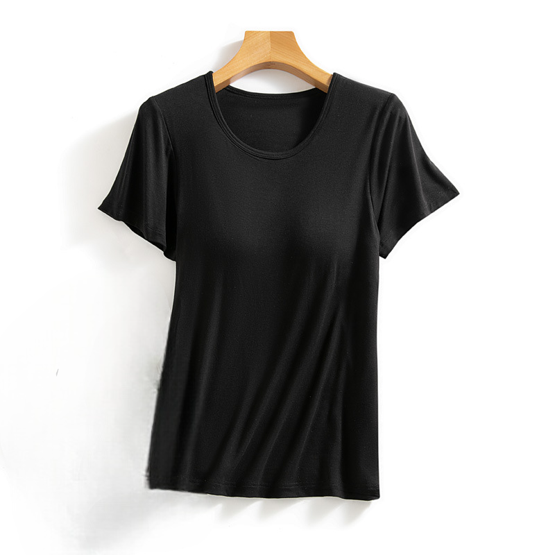 Effortlessly blending comfort, support, and everyday style, this T-shirt with a built-in bra is designed for women on the go. Made from ultra-soft, breathable fabric, it delivers a smooth, flattering fit with the convenience of all-in-one wear.