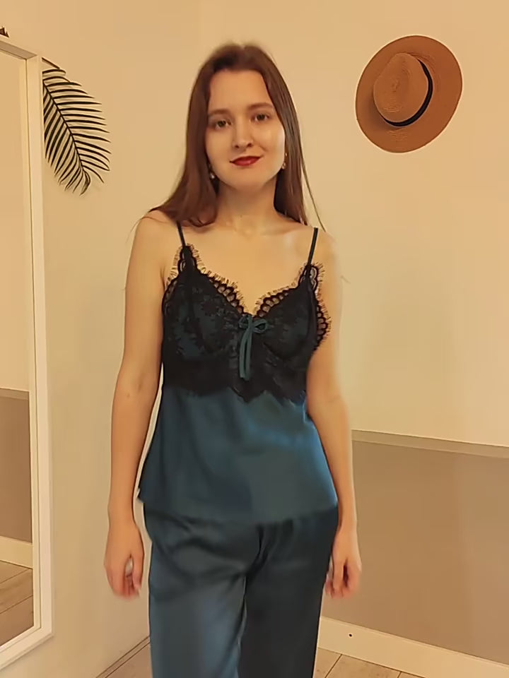 The set is paired with matching lace shorts also long pants, bringing a vibrant, feminine touch to this lingerie look. Designed for both comfort and style, this set is a versatile addition to your loungewear or nightwear collection, blending beauty and practicality effortlessly.