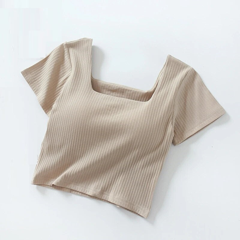 Timeless Design: The crop top embraces a timeless neckline, making it a versatile piece that can be paired with high-waisted jeans, skirts, or shorts for a casual and chic look.