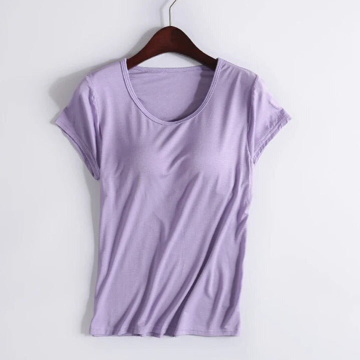Versatile Wardrobe Essential: Whether it's work, socializing, or lounging at home, this T-shirt with a built-in bra is a versatile choice for any occasion.