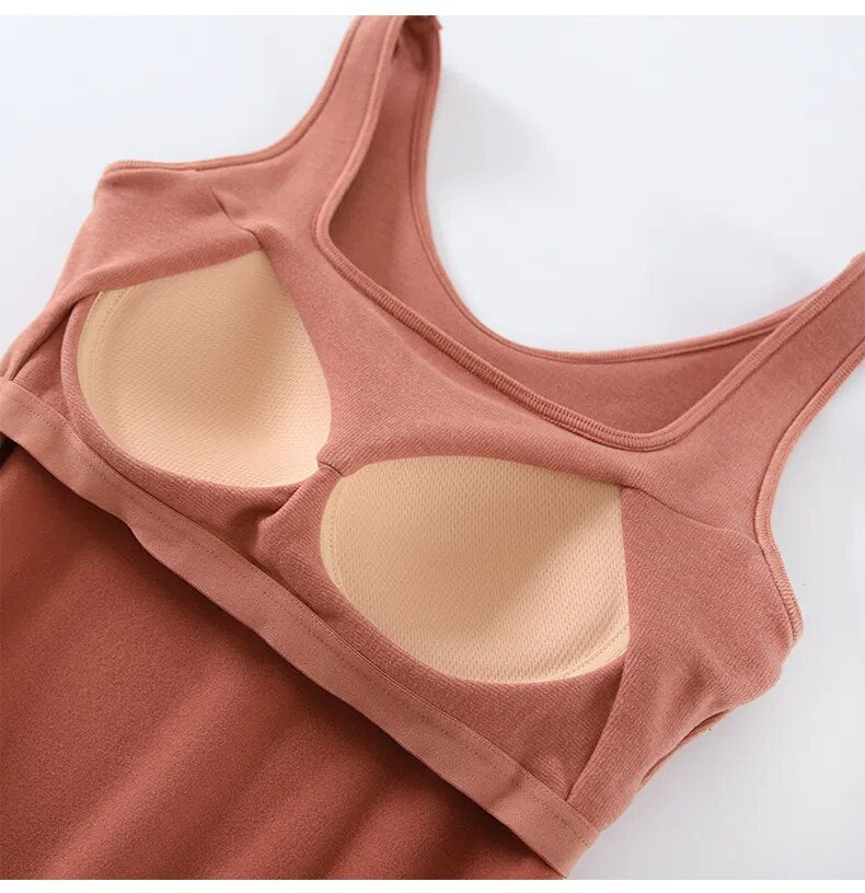 Thermal Tank Top with Inbuilt Bra Square Neckline