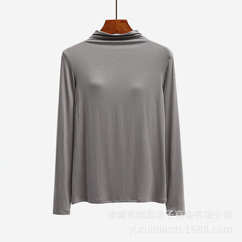 Turtle Neck Long Sleeve Top With Built In Bra Viscose