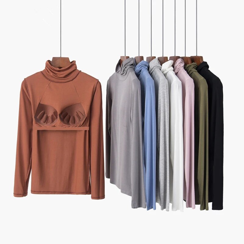 Enhance your wardrobe with our Turtle Neck Long Sleeve Top with Built-In Bra, and experience the ideal combination of comfort, support, and style. Discover effortless elegance and versatility with this must-have piece.